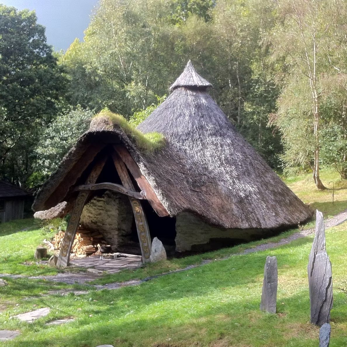 Gather around the fire in Cae Mabon's atmospheric thatched roundhouse for deep-time stories rooted in the mossy myths and animate intelligence of Taliesin's ancient isle.